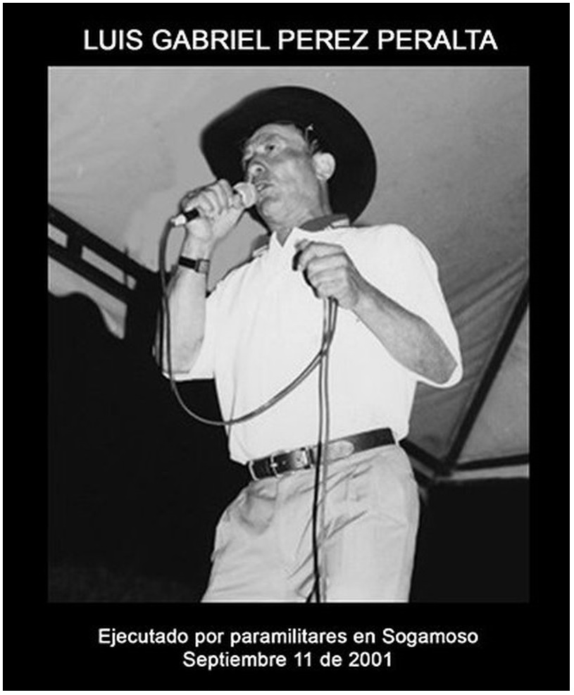 El 11 de septiembre de 2001 en Sogamoso, Boyacá, paramilitares asesinaron a LUIS GABRIEL PÉREZ PERALTA , 52 años(1).