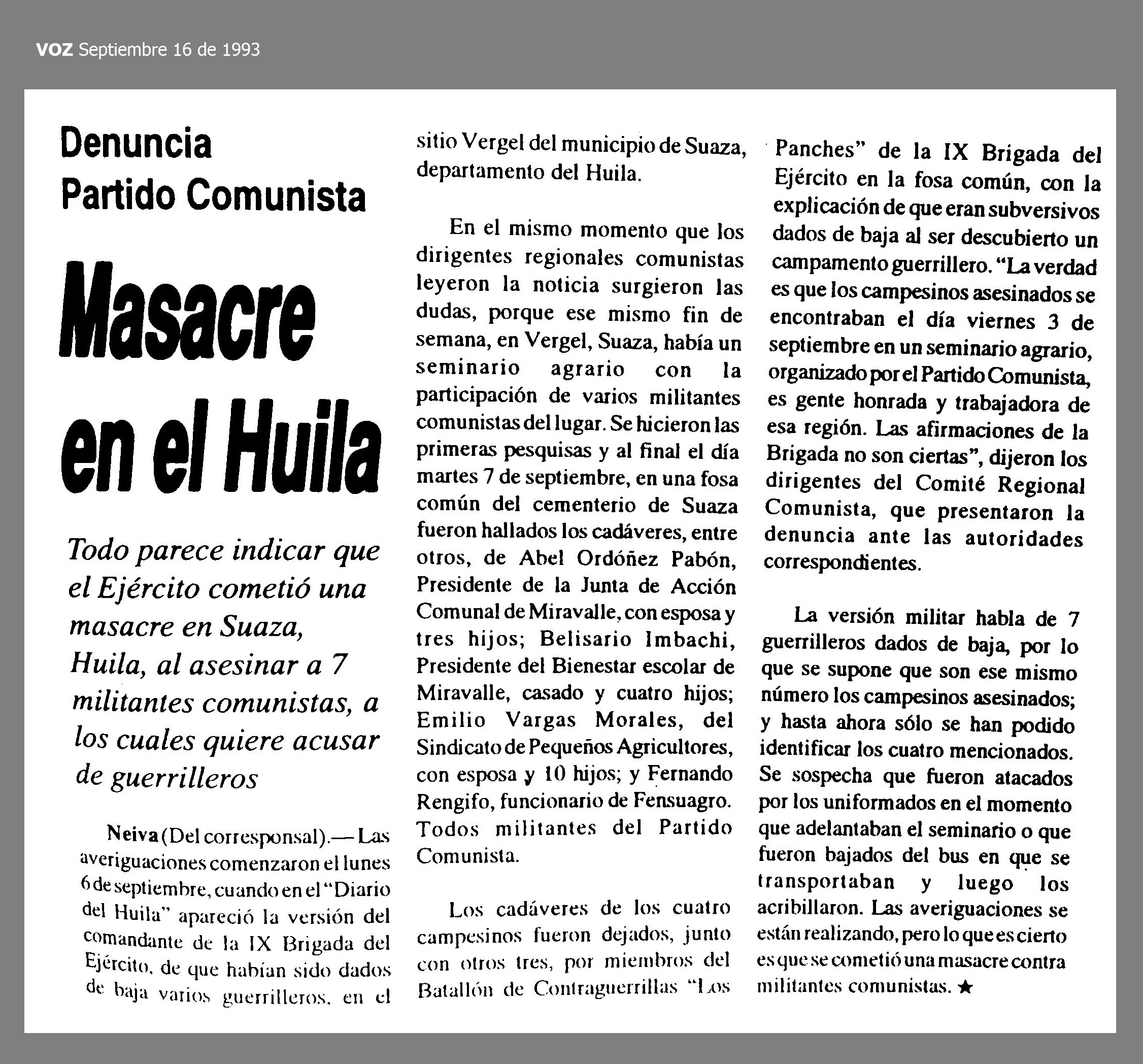 Masacre: EL VERGEL - SUAZA 04-Sep-93