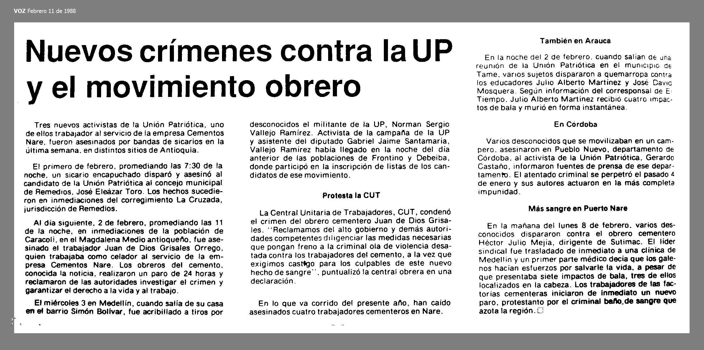 El 1 de febrero de 1988 en Tame, Arauca, paramilitares ejecutaron a JULIO ALBERTO MARTÍNEZ, educador y militante de la Unión Patriótica, y dejaron herida a otra persona (1). Estaba afiliado a ASEDAR Asociación de Educadores de Arauca (2).