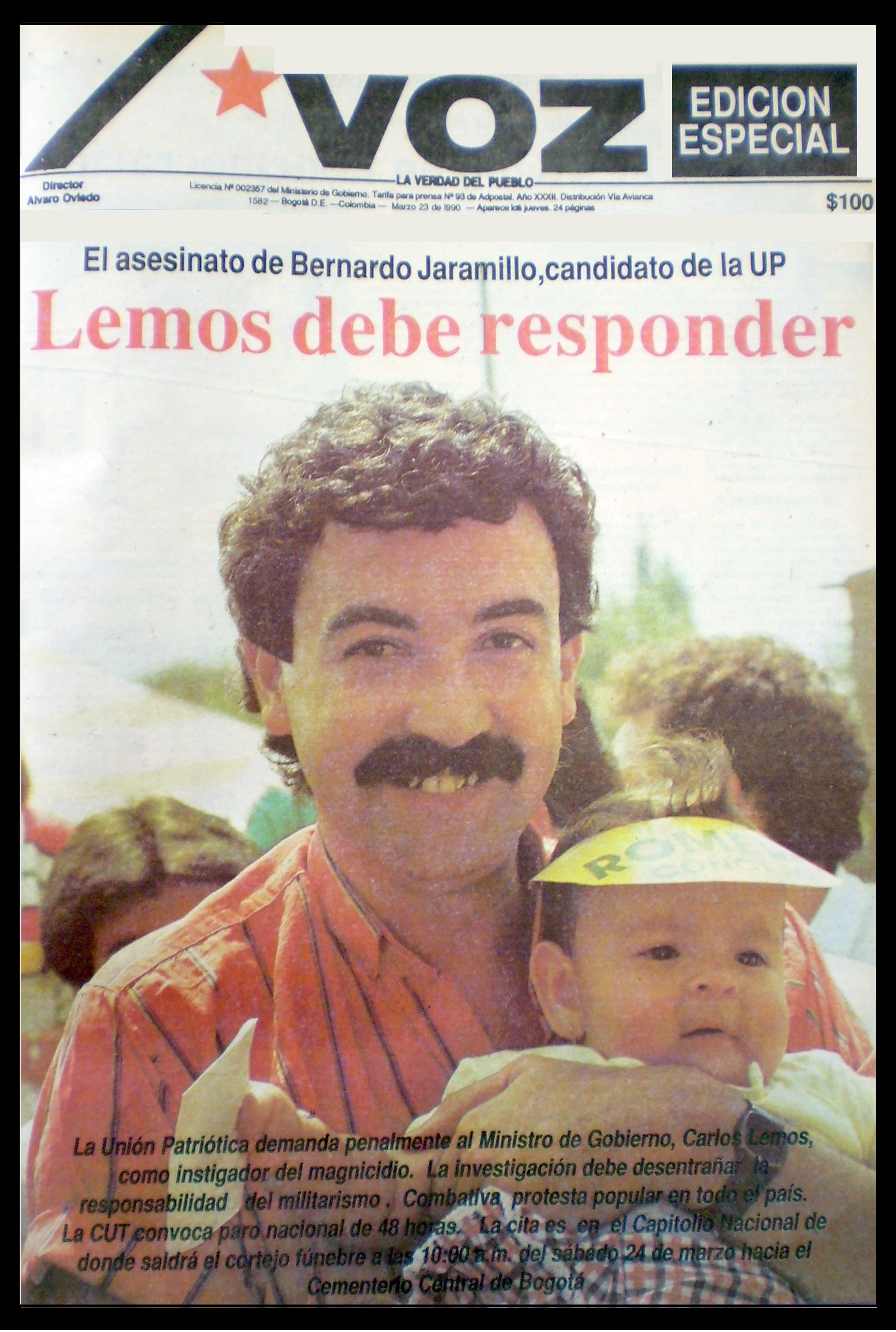 El 22 de marzo de 1990 en Bogotá, D.C., paramilitares ejecutaron al representante a la Cámara y candidato a la presidencia de la República por la Unión Patriótica, BERNARDO JARAMILLO OSSA, en el terminal Aéreo de Avianca, Aeropuerto el Dorado. Había sucedido en la candidatura a la presidencia por la Unión Patriótica a Jaime Pardo Leal, quien también fue asesinado, siendo el segundo candidato de la U. P. a la presidencia de la república asesinado durante la campaña electoral (1).