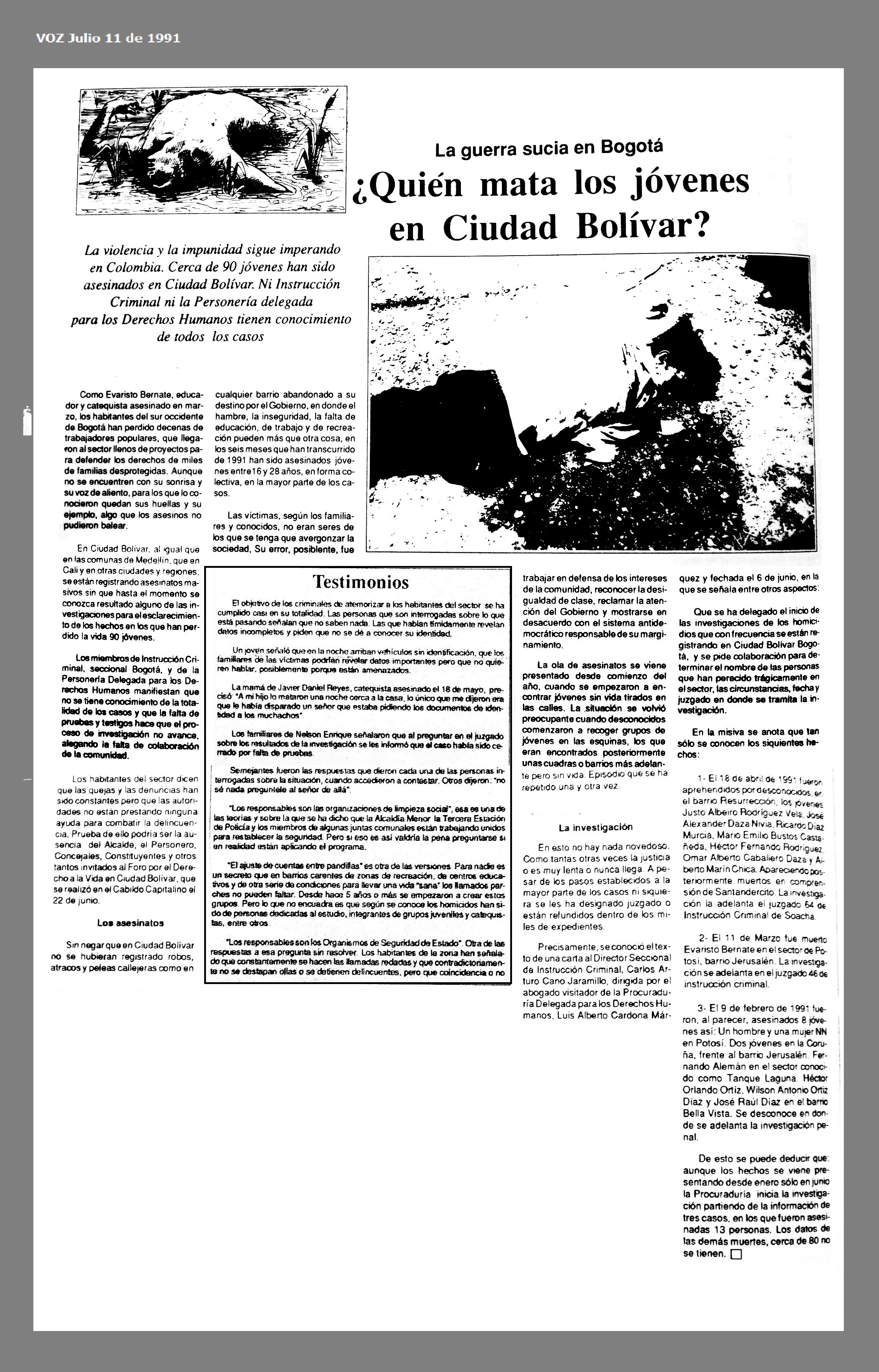 1. QUIEN MATA A LOS JOVENES EN CIUDAD BOLIVAR - Voz, julio 11 de 1991
